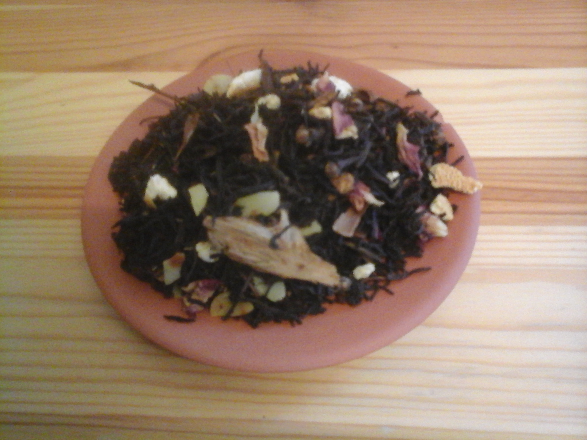 Zutaten: Schwarzer Tee, Zitronenschale, Zimt, Mandeln, Rosenblüten, Nelken, Aroma